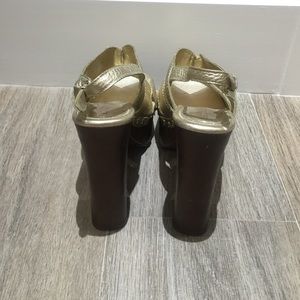 These chunky wood/gold heels are a perfect addition to your closet for this summer. So comfy and stylish. Great condition. No trades.