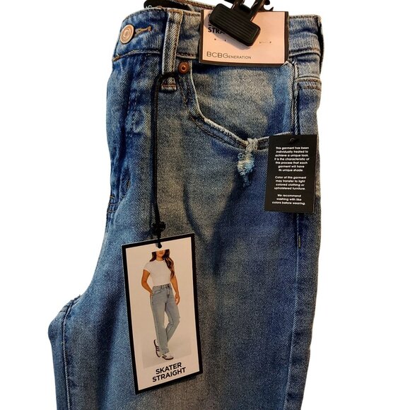 These BCBGeneration jeans offer a blend of style and comfort, with a straight fit design and light wash that effortlessly complements various outfits. The distressed detailing adds a touch of contemporary flair, making these jeans a versatile addition to any wardrobe. Crafted with quality denim, they promise durability and a comfortable fit that you can rely on day after day. Whether dressing them up or down, these jeans are an excellent choice for those seeking a fashionable yet functional piece.