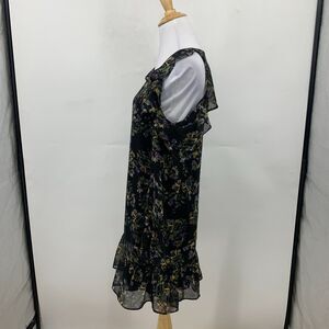 BCBGENERATION COLD SHOULDER DRESS WOMENS XXS 2XS FLORAL RUFFLE LINED KEYHOLE