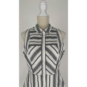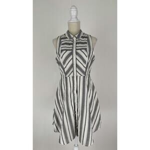 BCBGeneration Collared Striped Shirt Dress Womens Size 8 Grey White Sleeveless