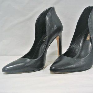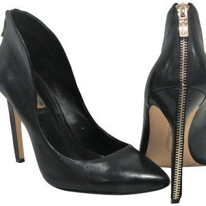 AMAZING!!! BCBG Conrad High-Heel Cutout Pump. Sexy black stiletto heel with zipper detail up the entire heel and high wing-back at the top of the heel with awesome dip effect at ankle.