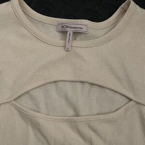 BCBGeneration Cream Cutout Long Sleeve Blouse
