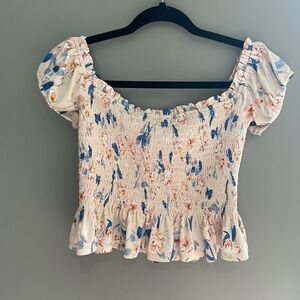 BCBGeneration Cream Flutter Sleeve Smocked Blouse