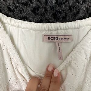 BCBGeneration Cream Ruffle Mini Dress