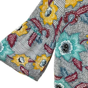 color: "batik floral" colorway - black and white with all over multicolor floral print