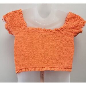 BCBGeneration Crop Top Women's MEDIUM Orange Smocked Off-The-Shoulder Stretch