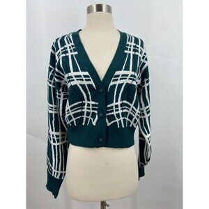 BCBGeneration Cropped Plaid Button Front Cardigan Whimsical Plaid Size M NWT