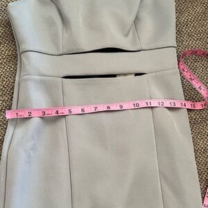 NWT BCBGeneration Cutout Strappy Bodycon Dress Womens Size 4 Mini Shimmer Grey Flirty Curve Fitting Event Occasion Home Coming Lined Hidden Zipper in Back Stretchy