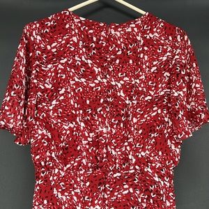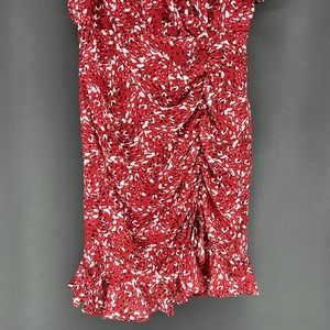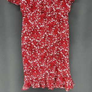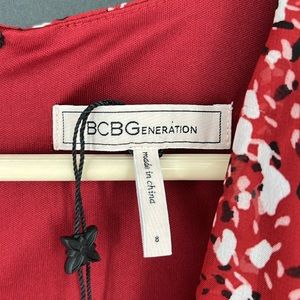 BCBGeneration DRESS NEW WITHOUT TAGS SIZE 8, BRICK RED WITH BLUE AND WHITE CONFETTI, FULLY LINED AND ZIPPERS DONW THE BACK.