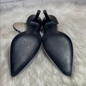 Heel height is 4". In very good pre-owned condition. Normal wear and tear noted, and some slight heel dings, shown in last photo. Please review pictures and feel free to ask any questions or for more pictures prior to purchasing
