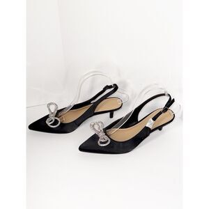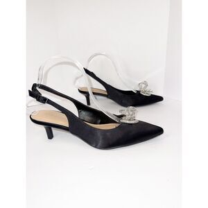 BCBGeneration Donna Pump Slingback Kitten Heel Rhinestone Bow Black Satin Pointed Toe Size 8