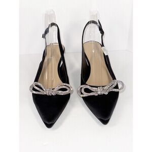 BCBGeneration Donna Pump Slingback Kitten Heel Rhinestone Bow Black Formal Sz 8
