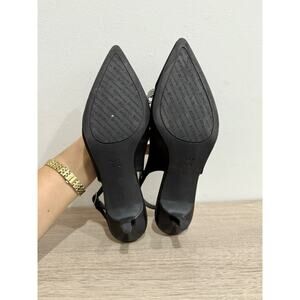 BCBGeneration Donna-2 Satin Kitten Heels Slingback Pump w/ Silver Bow Black 7.5
