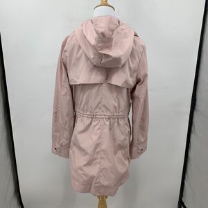 BCBGENERATION DOUBLE ZIP JACKET WOMEN M PINK SNAP BUTTON BUNGEE TIE WAIST HOODIE
