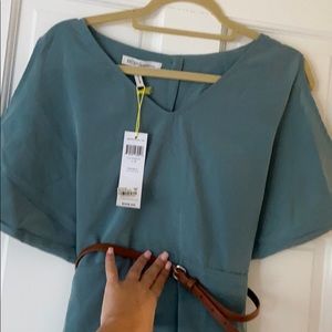 Beautiful, never been worn NWT BCBGeneration dress with skinny belt. Perfect for a shower or other semi formal event. Beautiful open back, shown in pictures. Flattering flowy sleeves. Color is “winter sky”. Make me an offer, price is negotiable!