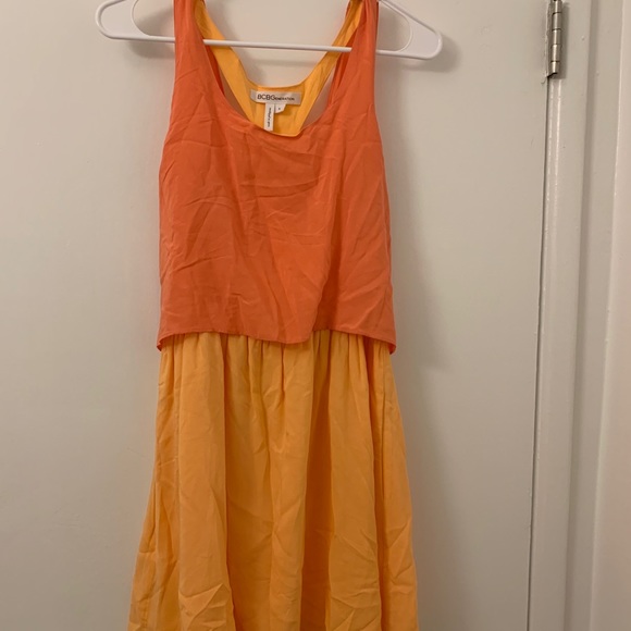 BCBGeneration dress. Soft cotton/linen style dress, salmon and tangerine in perfect condition, never worn. Fun tie in back.
