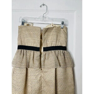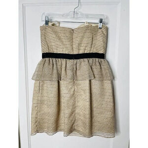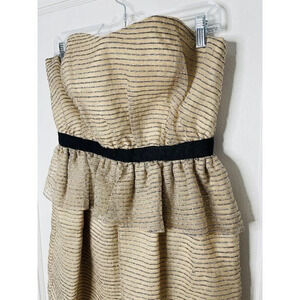 BCBGeneration Dress 8 Ribbed Gauze Chiffon Tiered Strapless Texture Peplum Party