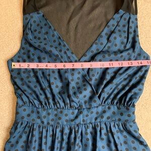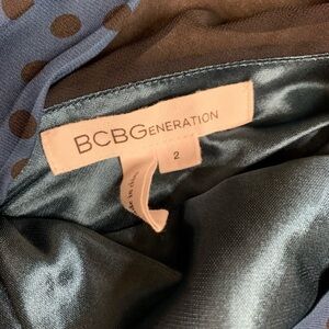 BCBGeneration Dress Polka Dot MIDI Black Blue Sheer Women Size 2. Has a sheer back. Body is fully lined. Side zip with snap closure. Blue with black polka dots. This dress is incredible!
