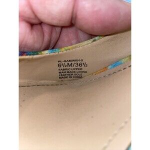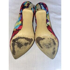 This womens multicolor pair of BCBGeneration dress shoes has heavy wear on soles and inside. The outer looks fine!