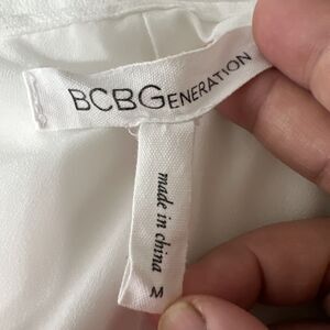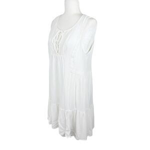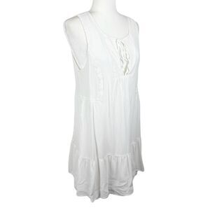 BCBGeneration Dress Women Medium White Sleeveless A-Line Tiered Tie Collar
