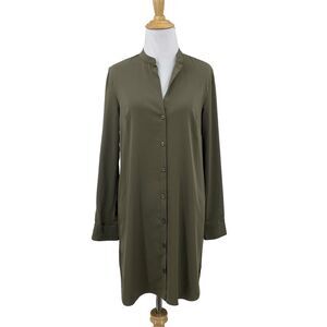 BCBGeneration Dress Women XXS 2XS Avocado Cutouts Sleeves Button Front Shirttail