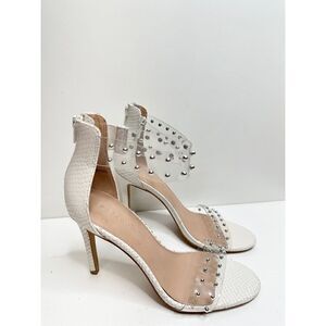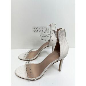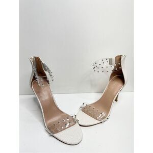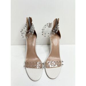 BCBGeneration Dress Sandals Womens Size 9 White Leather Metallic Studded
