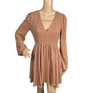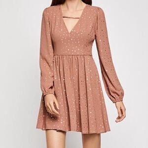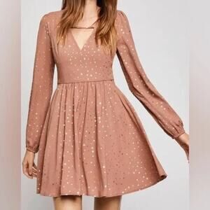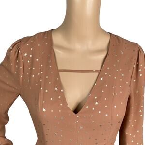 BCBGeneration Dusty Pink Gold Foil Star Print Bishop Sleeve Dress SZ 2