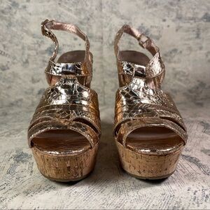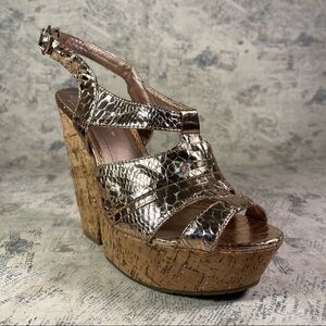 BCBG Generation EDELLE Rose Gold Cork Wedge Platform Sandals Womens Size 10 NWOB