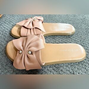 BCBGeneration Eleni Pink Bow Leather Slide Sandals Size 7 NWOT