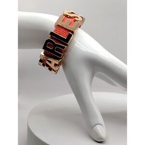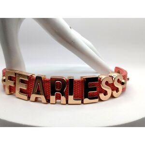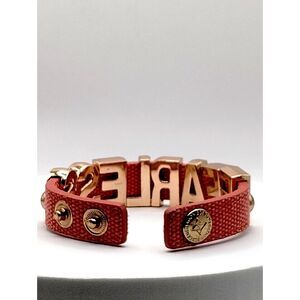 BCBGeneration FEARLESS Slide Charm Leather Snap Cuff Bracelet Pink and RoseGold