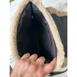 BCBGeneration Faux Bronze Leather Shoulder Crossbody Bag Fur Trim Boho New