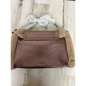 BCBGeneration Faux Bronze Leather Shoulder Crossbody Bag Fur Trim Boho New