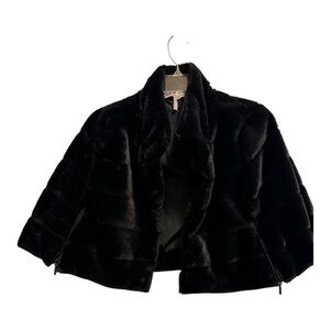 Add a touch of elegance to your party or cocktail outfit with this stunning black faux fur cape from BCBGeneration. Made of lightweight polyester, this cape is perfect for summer and spring occasions. The solid pattern and black color make it easy to pair with any outfit, while the cape style adds a unique and chic touch. The cape is designed for women in size XL and is part of BCBGeneration's regular size type. It features a polyester lining material and comes with one unit quantity. Ideal for coats, jackets, and vests, this cape is a must-have for any fashion-forward woman. Get the BCBGeneration Black Faux Fur Cape and elevate your style to the next level.