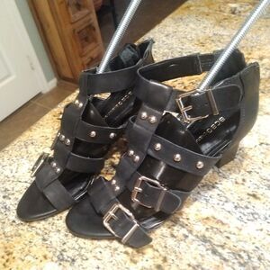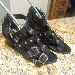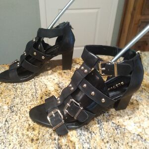 BCBGeneration Fizzy Strappy Gladiator Sandal Heels Black/Gold BG-FIZZY Size 8.5B
