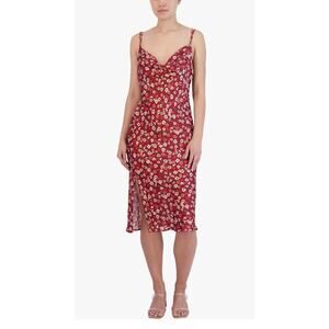 BCBGeneration Floral Cown Neck Satin Midi Dress