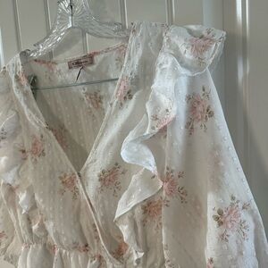 BCBGeneration Floral Swiss Dot Ruffled Peplum Top LIKE NEW!!