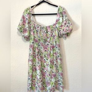 BCBGeneration Floral off shoulder Puff sleeves white & pink mini dress size 6
