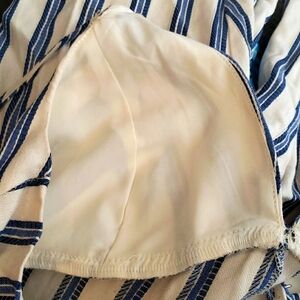BCBGeneration Gardenia White with Blue Stripes Spaghetti Straped Jumpsuit SZ 4