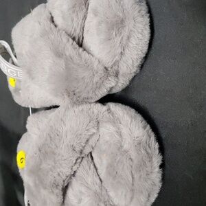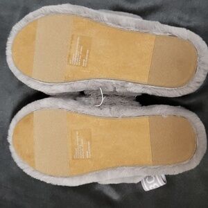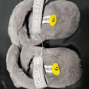 BCBGeneration Gray Faux Fur Criss-Cross, Heel Strap Slippers