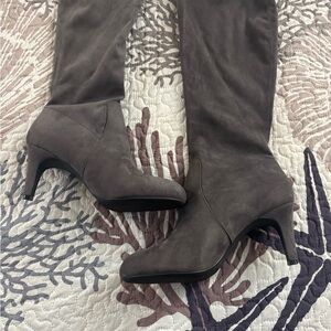Elegant gray boots with a sleek design. Perfect for any occasion. Size 10 smoke free home. Excellent condition