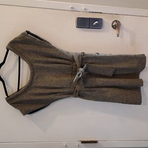 BCBGeneration Green Brown Wool Blend Tweed Button Bow Dress L