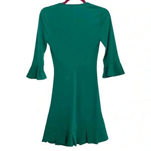 Beautiful green dress with ruffled sleeves and bottom hem