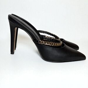 BCBG Havinda Black Chain Detail Mules Mismatched Sizes 6/6.5Gorgeous