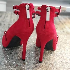 Tree a High Heel. The classic red heel gets an ultra modern chic update in these shoes, Stiletto heel, 4", Suede upper, Point toe, Side buckle and rear zip closure, ...❤❤💃👠💄‼‼‼‼‼‼Fairly NEW😉