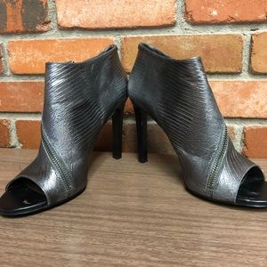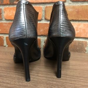 BCBGeneration Heels • Dark Silver Snake Like Print • Zips up the front • Cut out & toes exposed • in great shape, some marking on toes and heel (pics) • size of heel in pics • overall comfy shoe, zipper is tight, fits good and snug || open to reasonable offers