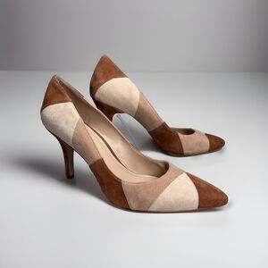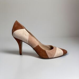 BCBGeneration Heels Brown & Beige Patchwork Suede Leather Pumps Shoes Size 8.5 M