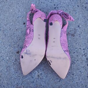 BCBGeneration Henaya Pink Snake Print Slingback Heels 9.5M Bow Detail