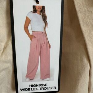 Effortless sophistication arrives with these high-rise wide-leg trousers. The pleated front adds a touch of tailored elegance, while the elastic waistband ensures all-day comfort. The neutral color makes them incredibly versatile, easily paired with a variety of tops and shoes. These trousers offer a flattering silhouette and a modern, relaxed fit. Perfect for a casual brunch with friends, a day at the office, or a stylish evening out.