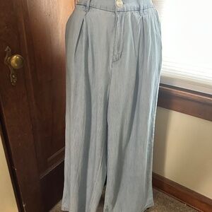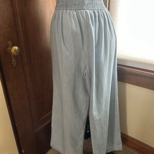 BCBGeneration High Waist Wide Leg Light Blue Chambray Summer Pant with Pleats. Elastic at back waist. Lightweight. Extremely Comfortable. Worn twice.