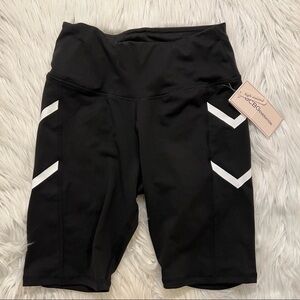 Great condition, new with tags. BCBGeneration. High-waisted bike shorts. Black with white details on sides. Storage pocket. Style BGEN1160. Size medium. Stretch 87% polyester, 13% spandex. Waist 12” Inseam 10” Front Rise 10.5”. All measurements are approximate and taken lying flat. Smoke free home. No trades, offers welcome.